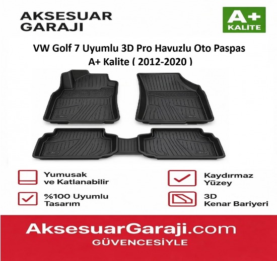 Yolculuklarınız artık daha temiz, düzenli ve şık: VW Golf 7 ( 2012-2020 ) modelleri için özel olarak üretilmiş bu 3D Pro Havuzlu Paspas, muhteşem uyumu, dayanıklılığı ve estetik sunumuyla öne çıkıyor.