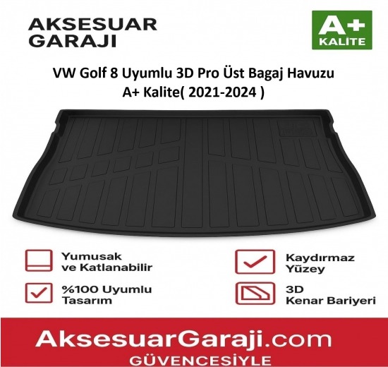 VW Golf 8 Uyumlu 3D Pro Üst Bagaj Havuzu – A+ Kalite( 2021-2024 )